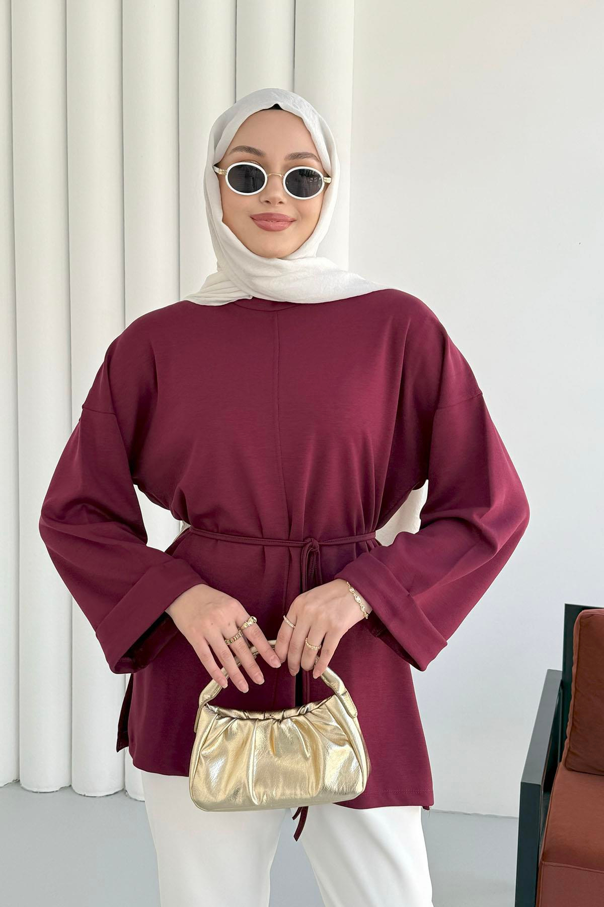 Bel Bağlamalı Kol Detaylı Tesettür Tunik-BORDO (8896)