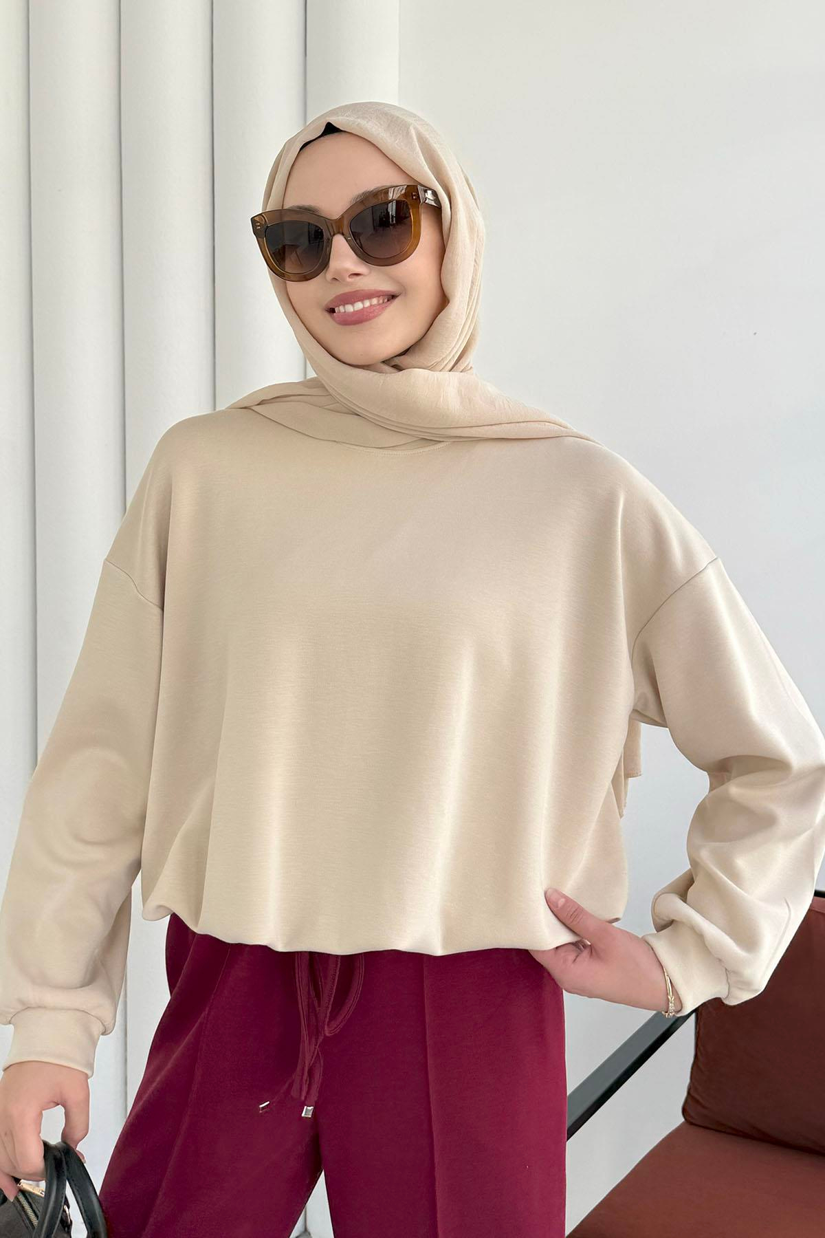 Bisiklet Yaka Oversize Sweatshirt-TAŞ (30008)