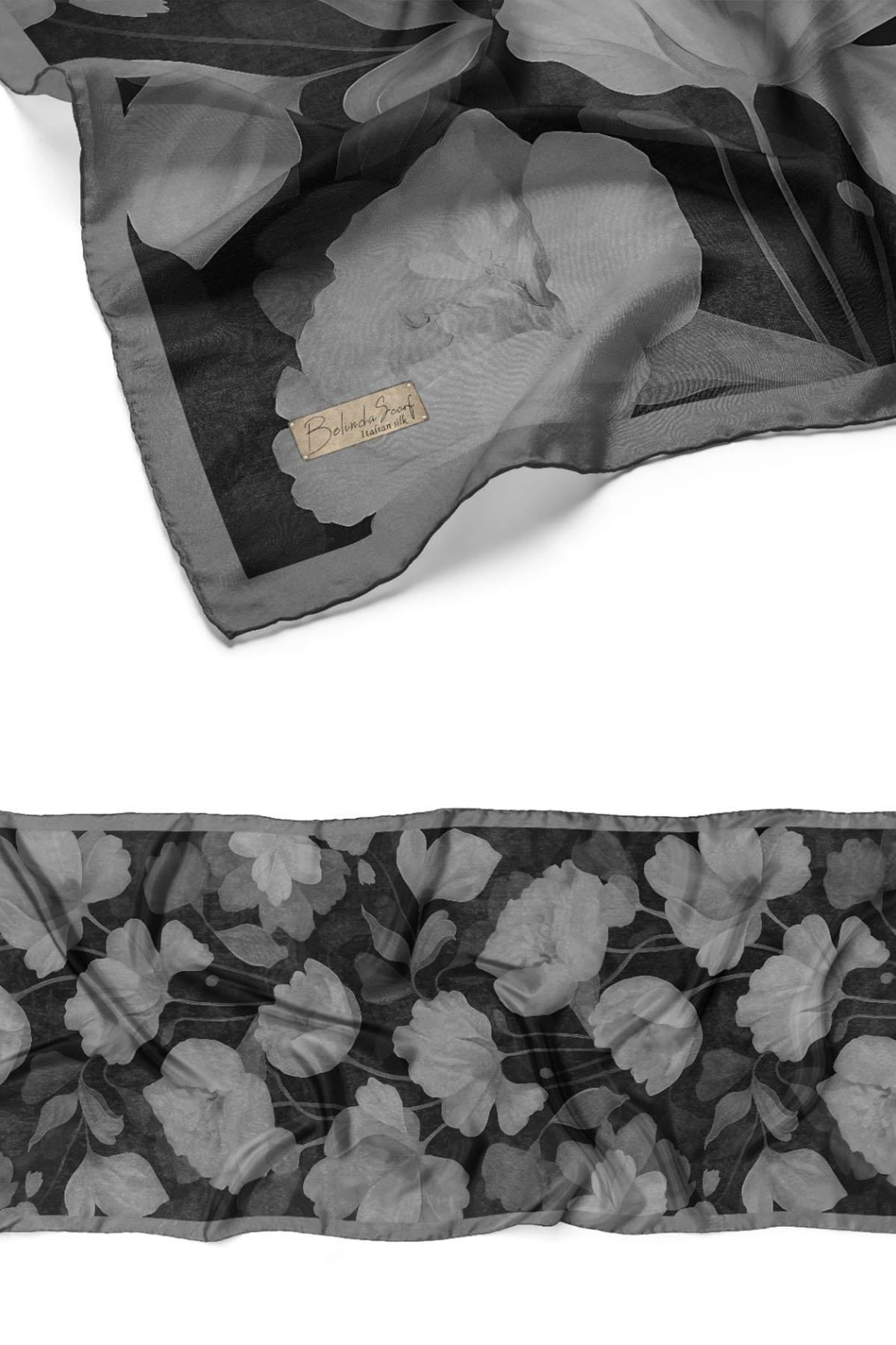 Büyük Çiçek Desenli İtalyan İpeği Pamuk Şal-FÜME