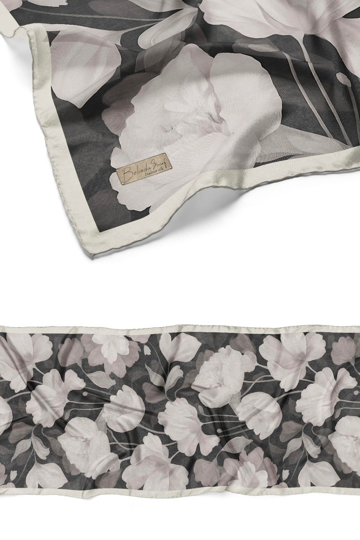 Büyük Çiçek Desenli İtalyan İpeği Pamuk Şal-TAŞ