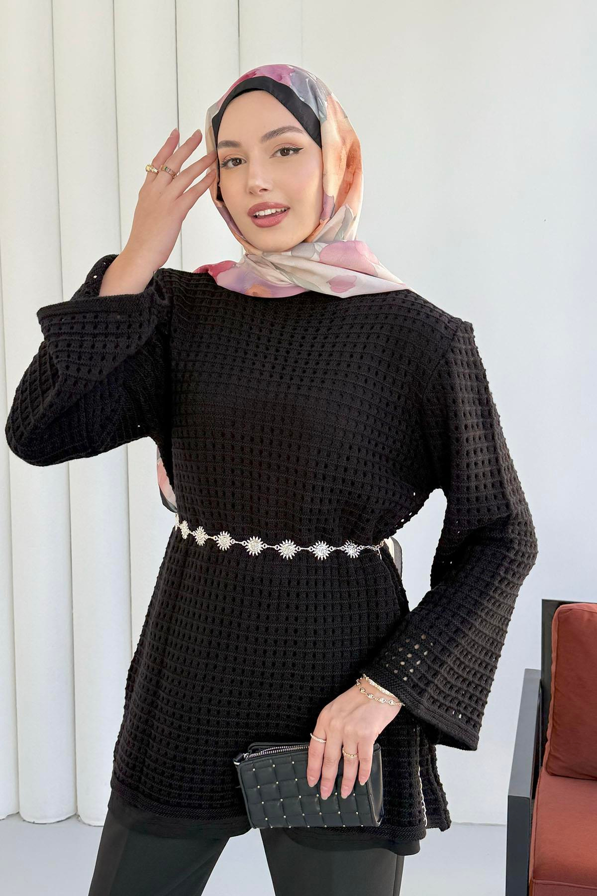 File Detalı İçlikli Triko Tunik-SİYAH (24348)