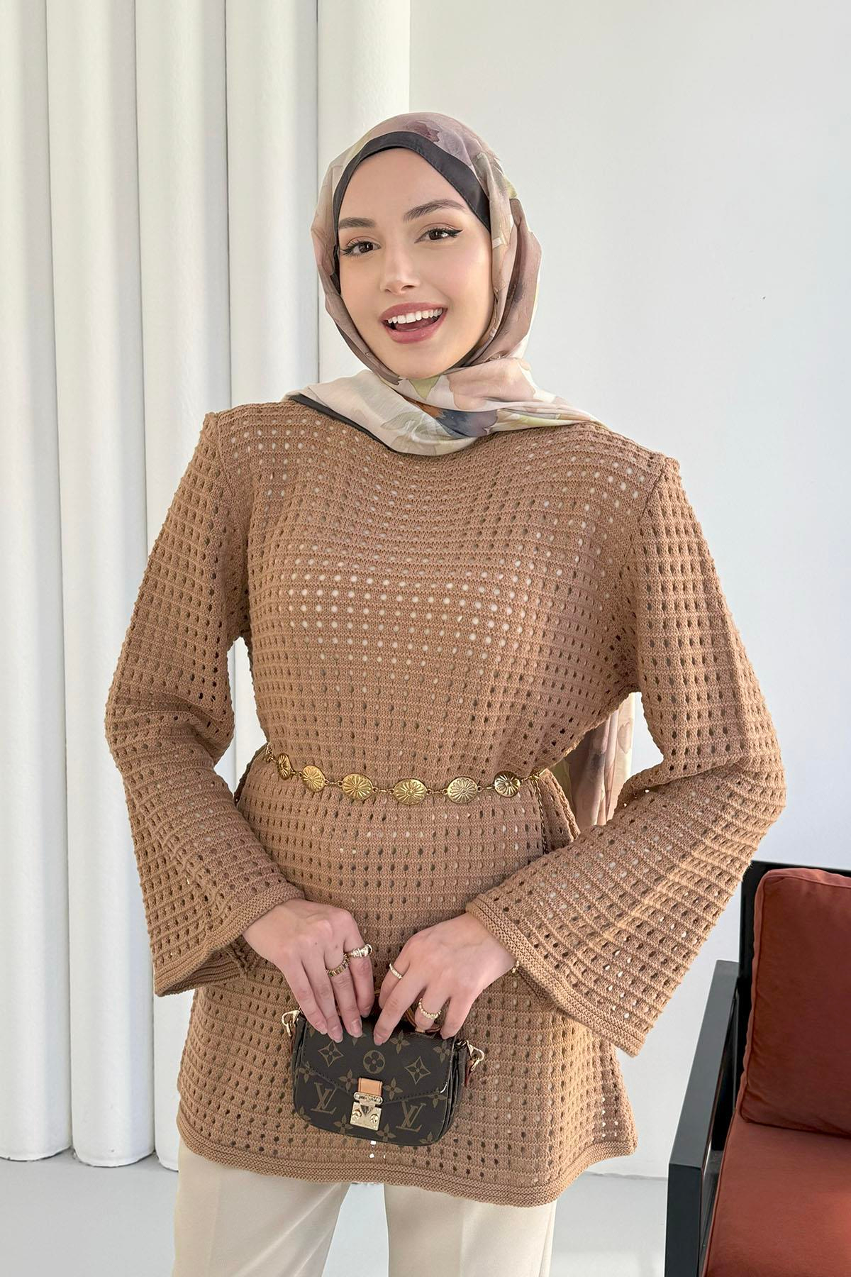 File Detalı İçlikli Triko Tunik-TOPRAK (24348)