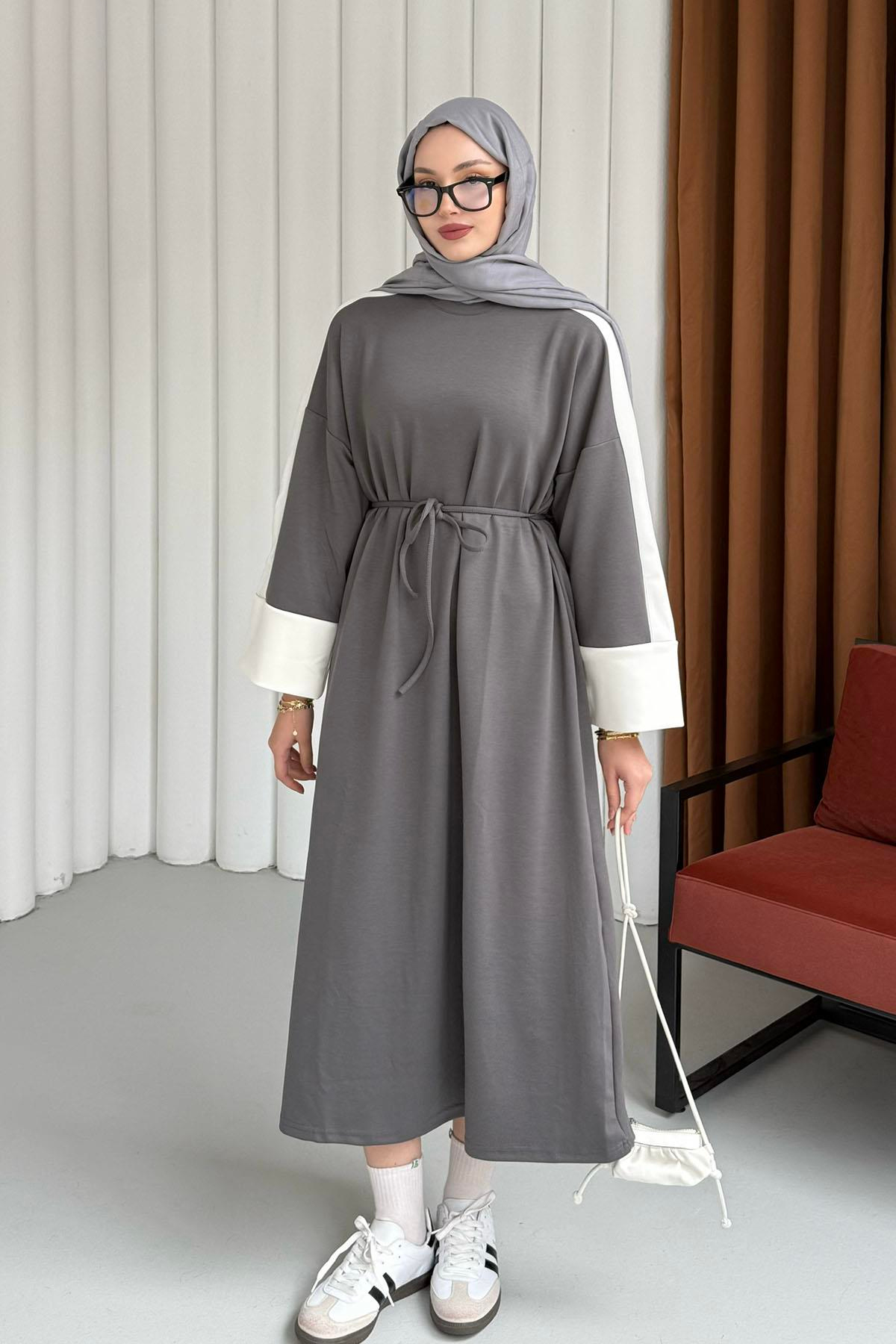 Garnili Oysho Kumaş Tesettür Elbise-FÜME (5265)