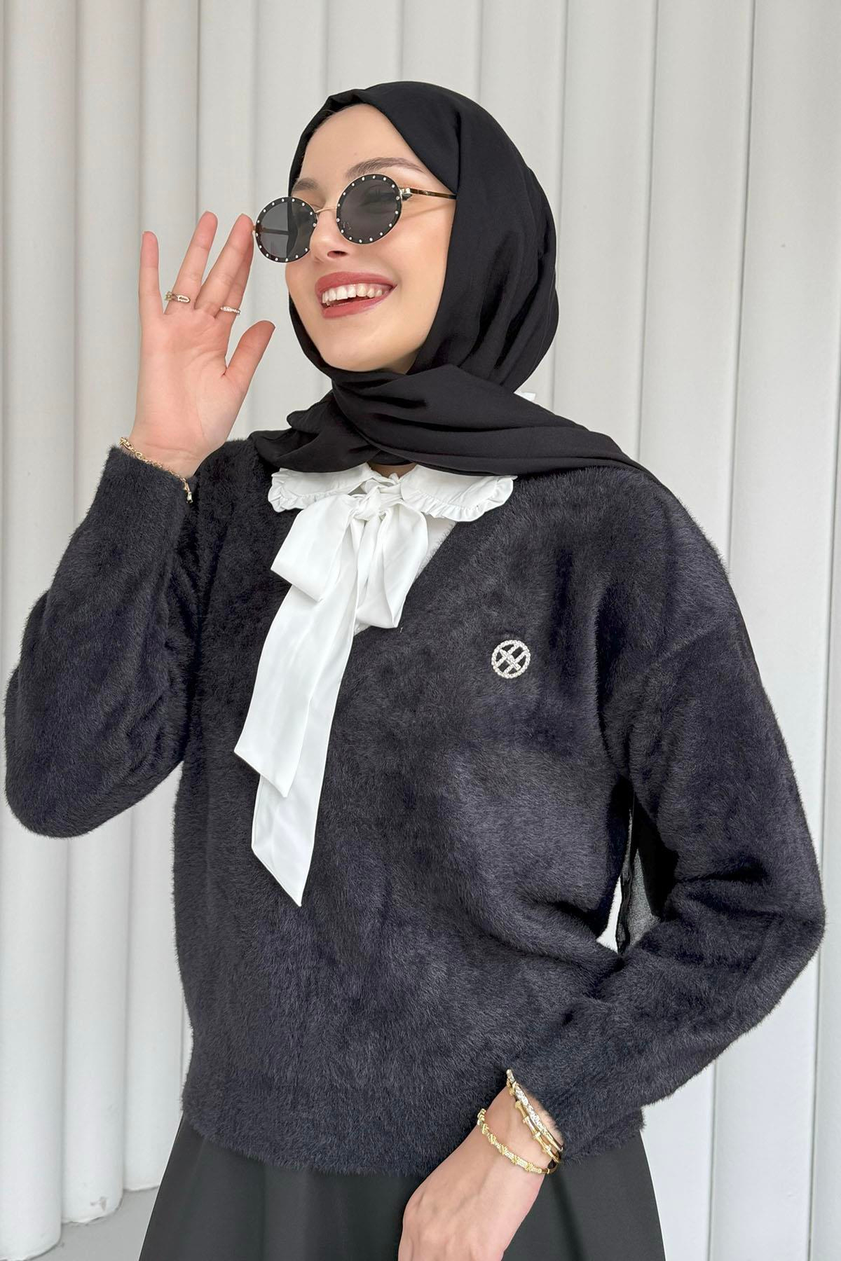 Gömlek Garnili Yumoş Kazak-SİYAH (26143)