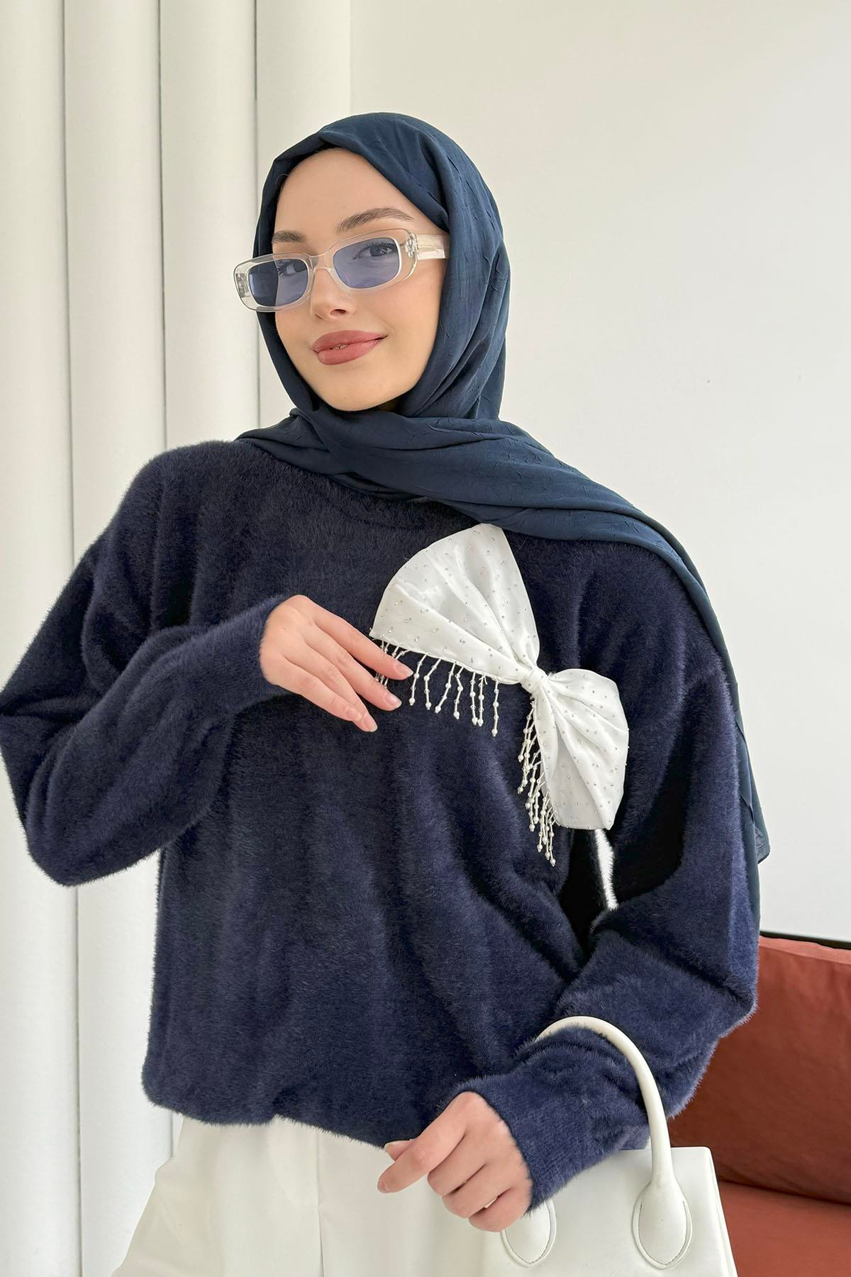 İnci Ve Fiyonk Detaylı Triko Kazak-LACİVERT (2627)