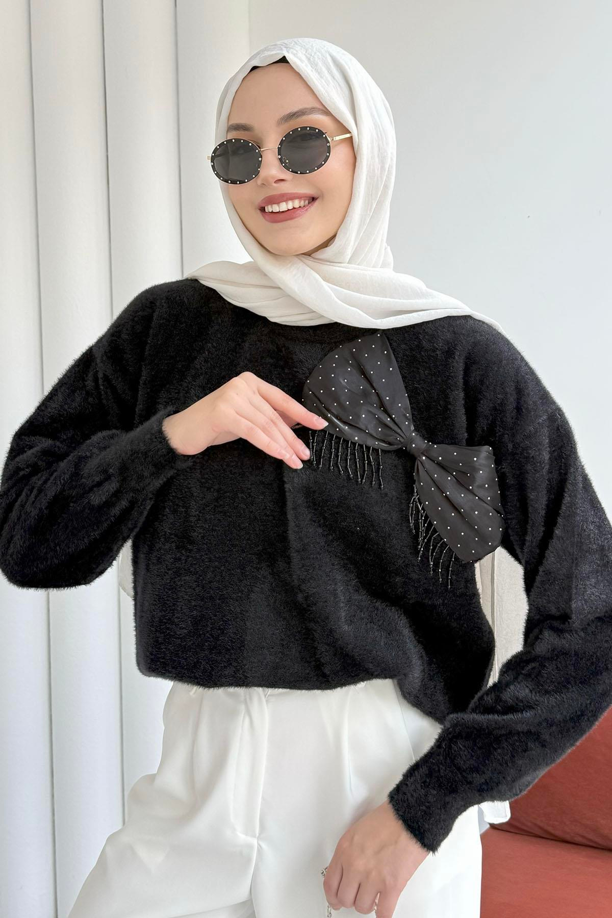 İnci Ve Fiyonk Detaylı Triko Kazak-SİYAH (2627)