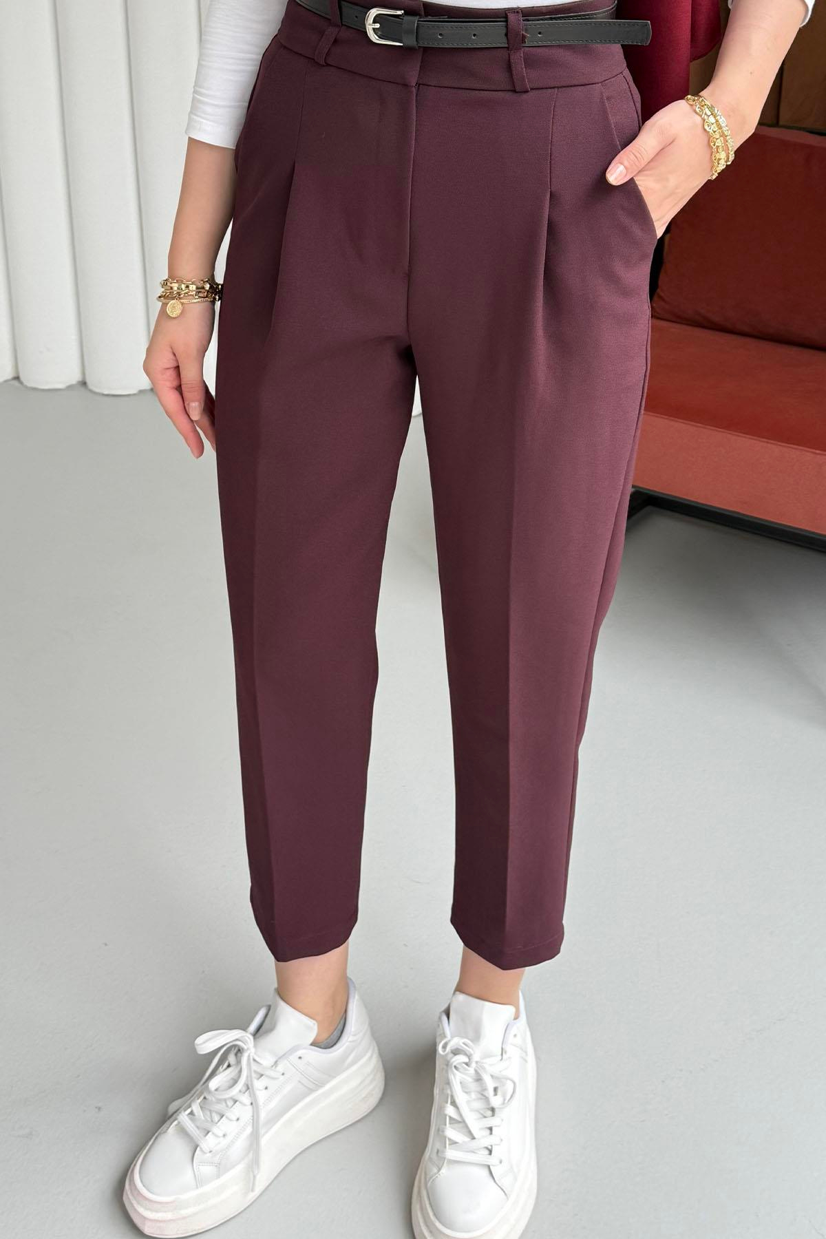 Kendinden Kemerli Kalem Pantolon-MÜRDÜM (3790)