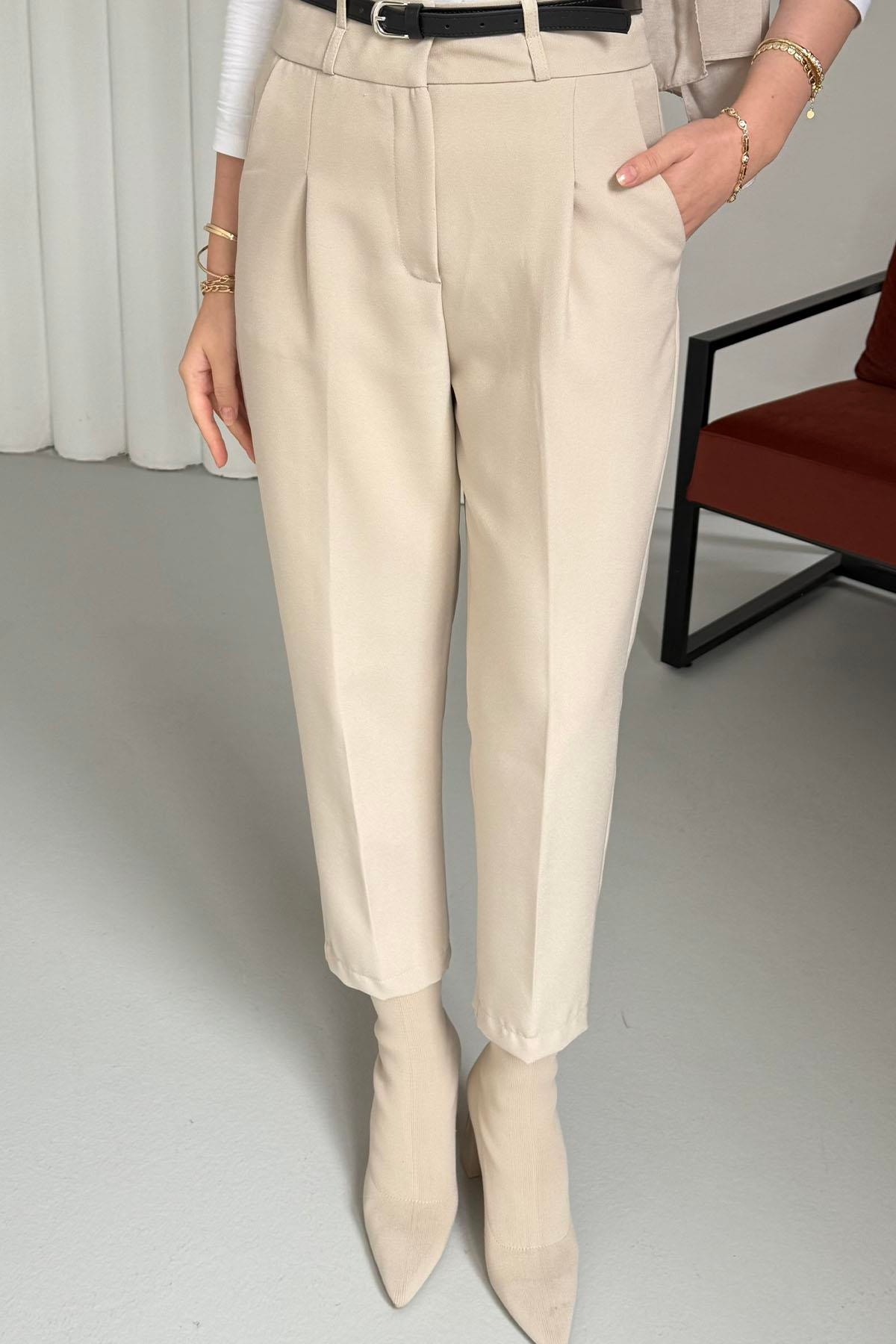 Kendinden Kemerli Kalem Pantolon-TAŞ (3790)
