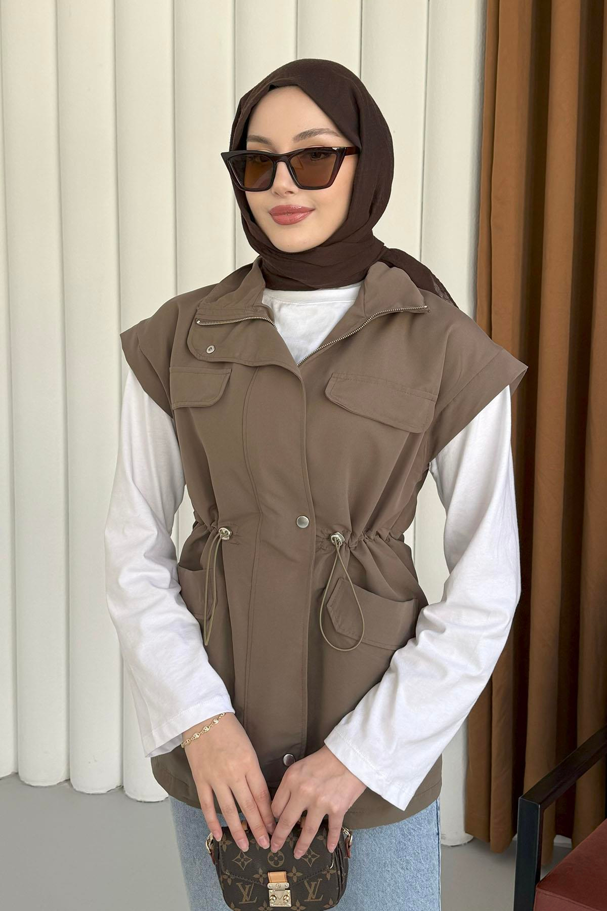 Ön Fermuarlı Cep Kapaklı Bel Büzgü Yelek-KAHVERENGİ Ön Fermuarlı Cep Kapaklı Bel Büzgü Yelek-HAKİ YEŞİL Ön Fermuarlı Cep Kapaklı Bel Büzgü Yelek-SİYAH