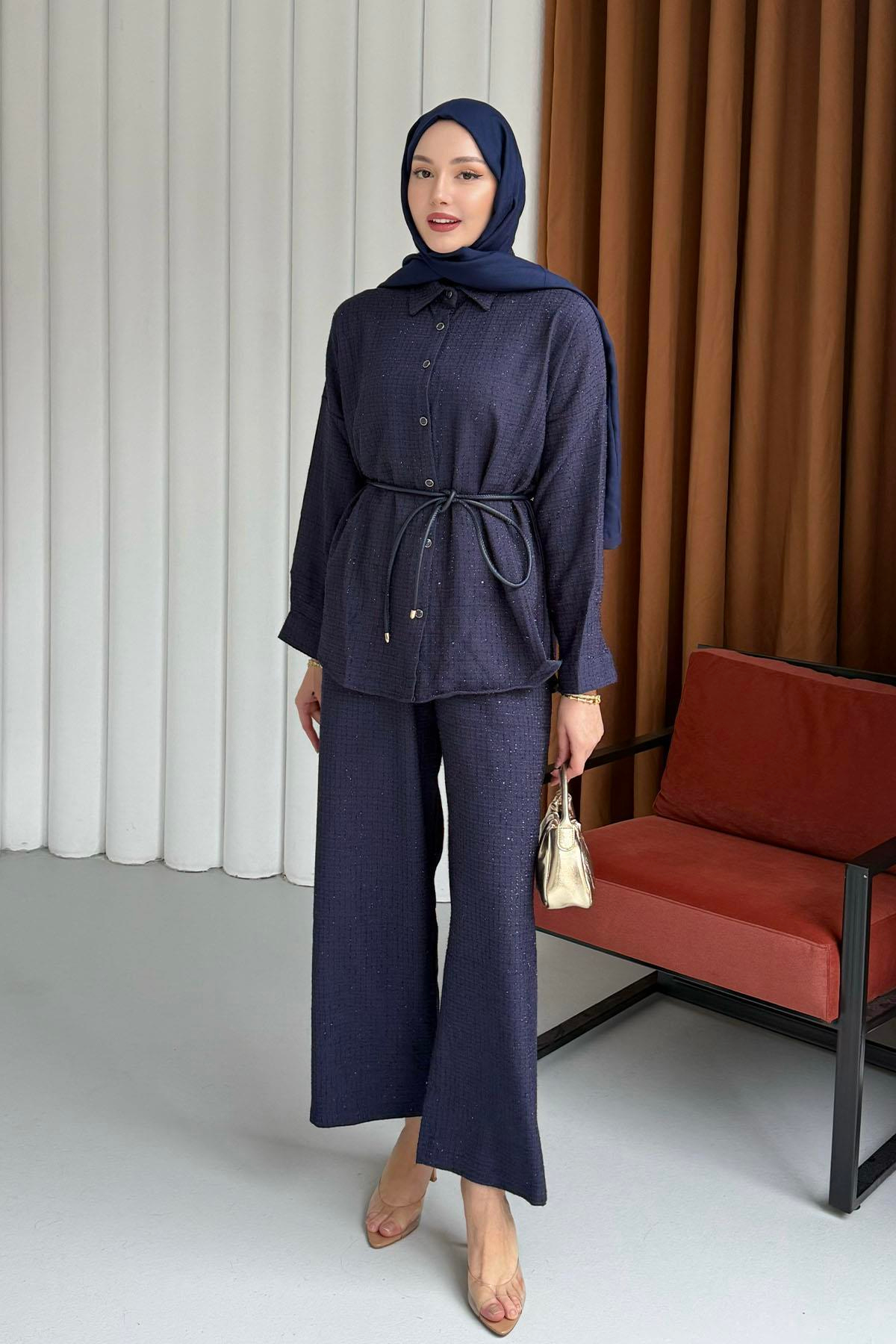 Önü Düğmeli Sim Detaylı Tesettür Takım-LACİVERT (8711)