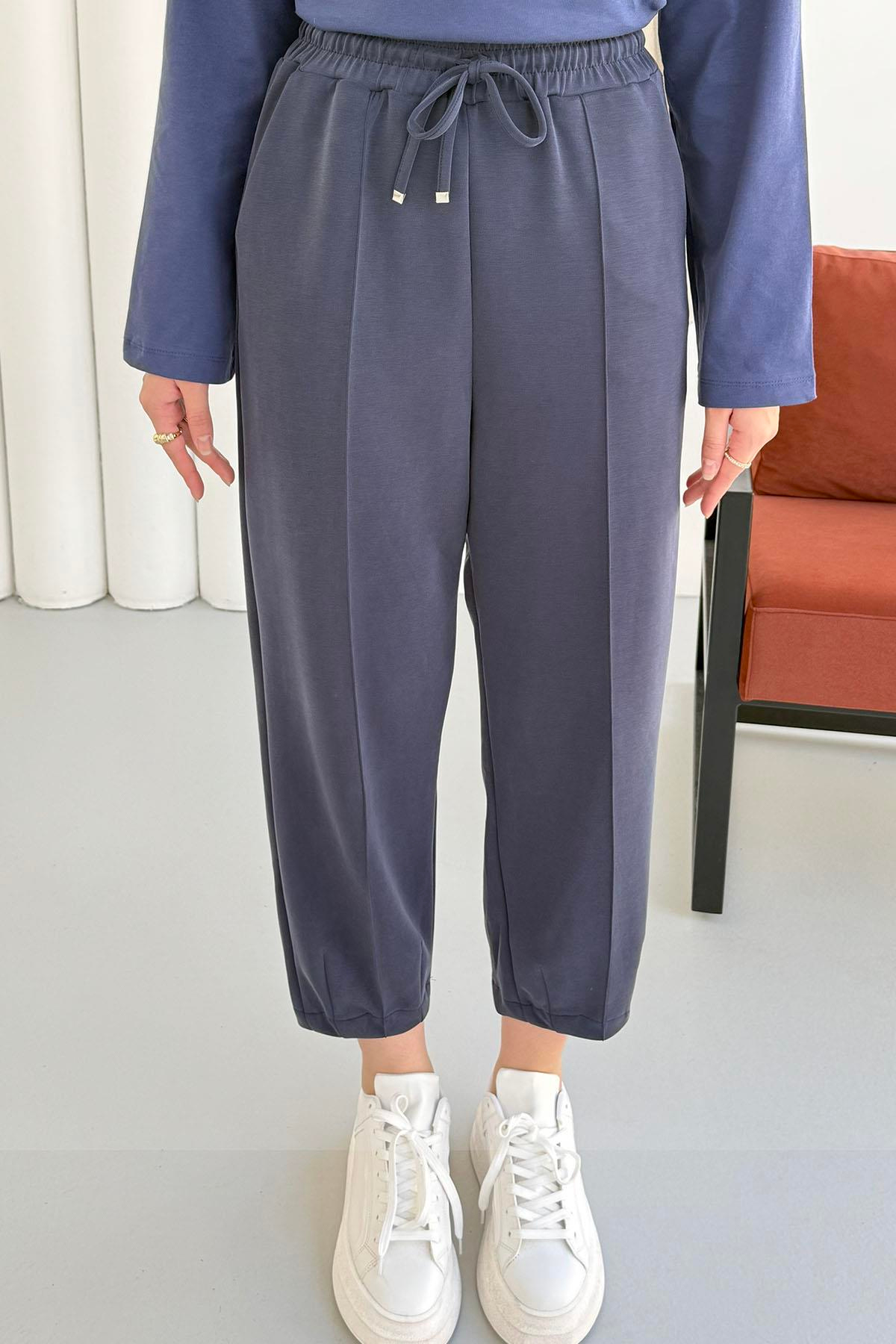 Paçası Dikişli Oysho Kumaş Pantolon-LACİVERT (26098)