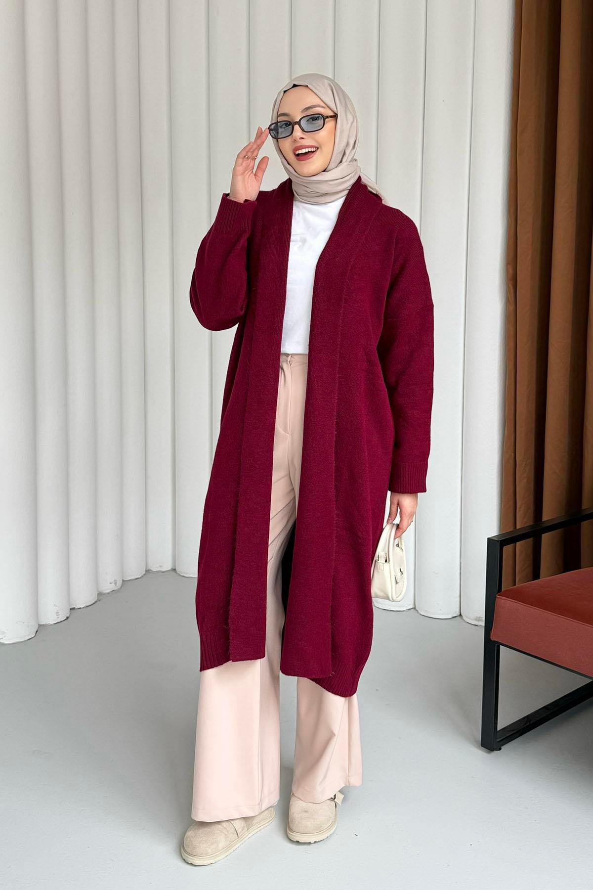 Şal Yaka Uzun Triko Hırka-BORDO (1156)