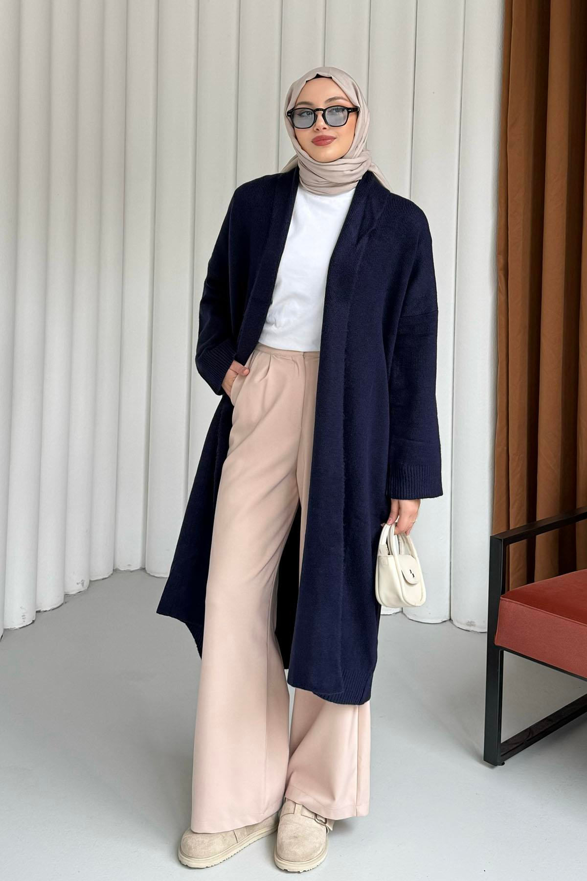 Şal Yaka Uzun Triko Hırka-LACİVERT (1156)