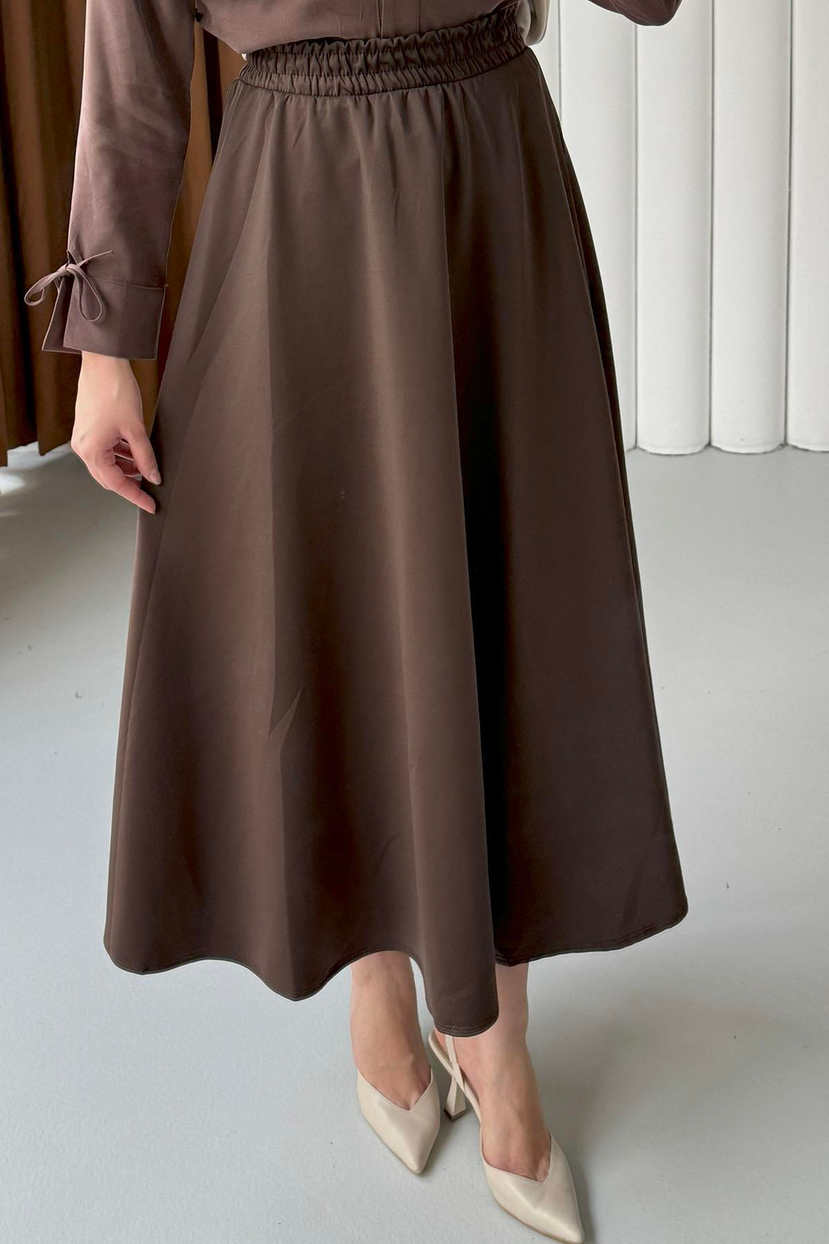 Scuba Kumaş Kloş Etek-KAHVERENGİ (27002)