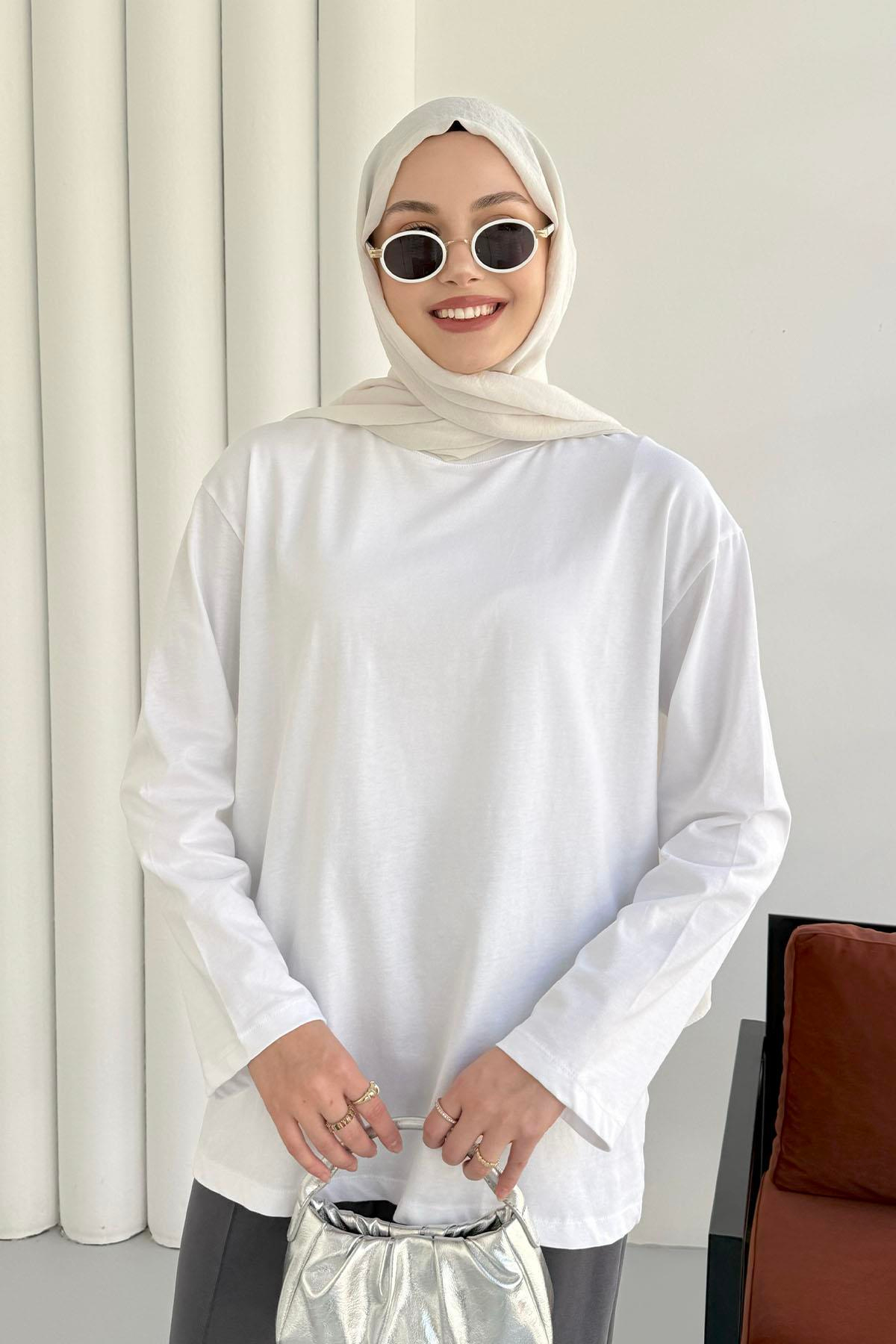 Uzun Kollu T-Shirt-BEYAZ (30058)