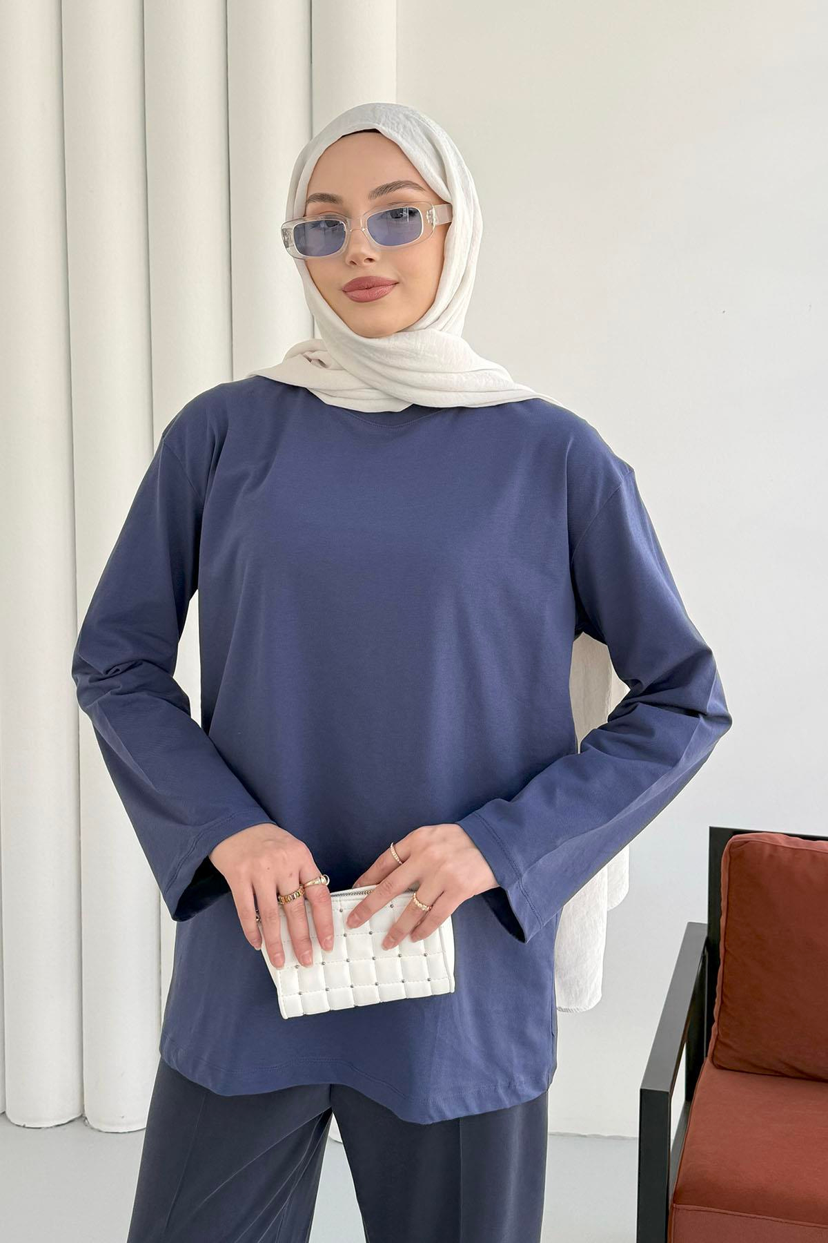 Uzun Kollu T-Shirt-LACİVERT (30058)