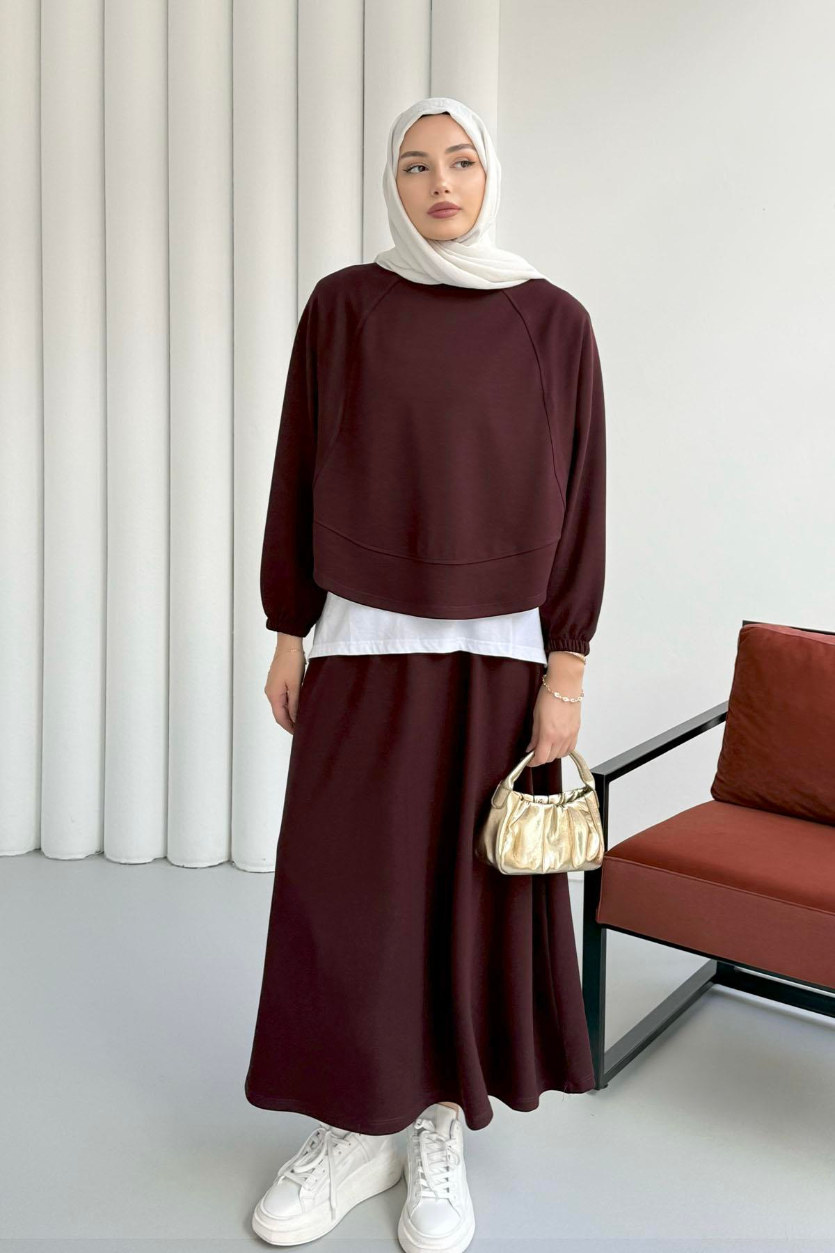 Yarasa Kol Almera Etekli Tesettür Takım-LACİVERT Yarasa Kol Almera Etekli Tesettür Takım-KAHVERENGİ Yarasa Kol Almera Etekli Tesettür Takım-BORDO Yarasa Kol Almera Etekli Tesettür Takım-SİYAH